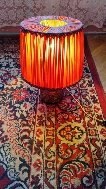 Lampa stojąca na 3 żarówki podstawa i rurka jest obszyta skora (skoro podobna) nie znam się .Działająca sprzedaje tak ...