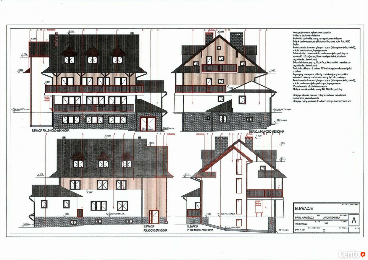 - bryła budynku składa się z czterech kondygnacji i strychu