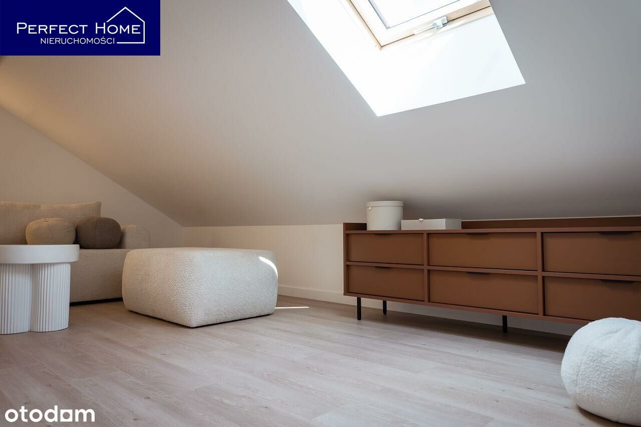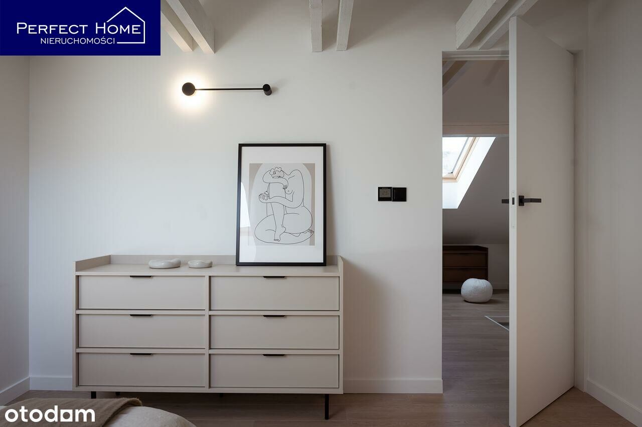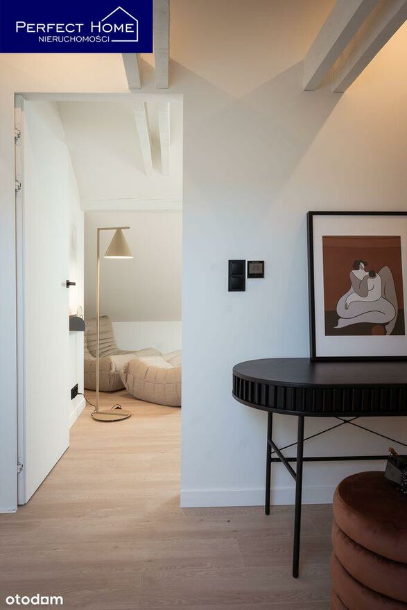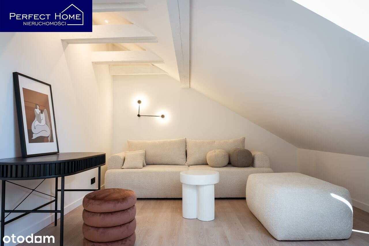 Apartament ma powierzchnię całkowitą ok. 78 m (w tym 35,5 m zaadaptowanego poddasza) i oferuje doskonałe połączenie komfortu, funkcjonalności oraz prywatności.Pierwszy poziom obejmuje przestronny salon z aneksem kuchennym i wyjściem na taras, sypialnię oraz elegancką łazienkę.Na poddaszu znajduje się przytulna sypialnia oraz dodatkowy pokój idealny na gabinet, bibliotekę lub własną strefę relaksu.