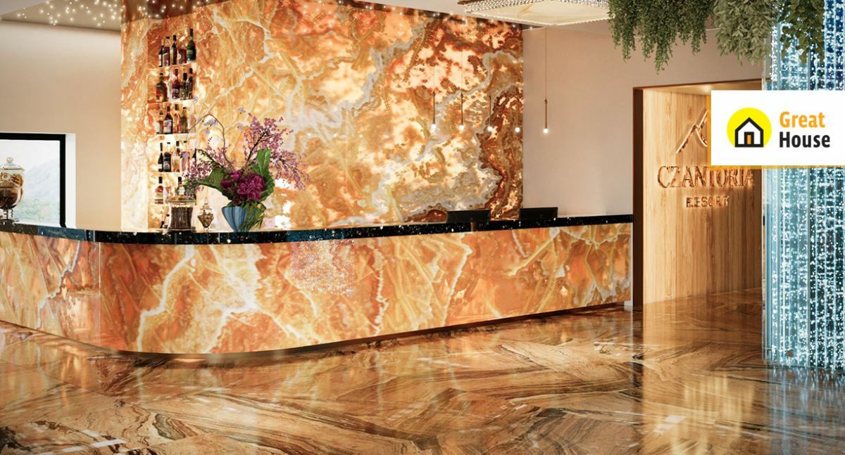 Sam budynek to wysoka półka - elegancka, nowoczesna architektura, regionalna karczma na miejscu, a na dachu strefa spa z podgrzewanym basenem i jacuzzi. Wypoczynek z widokiem na góry robi różnicę.