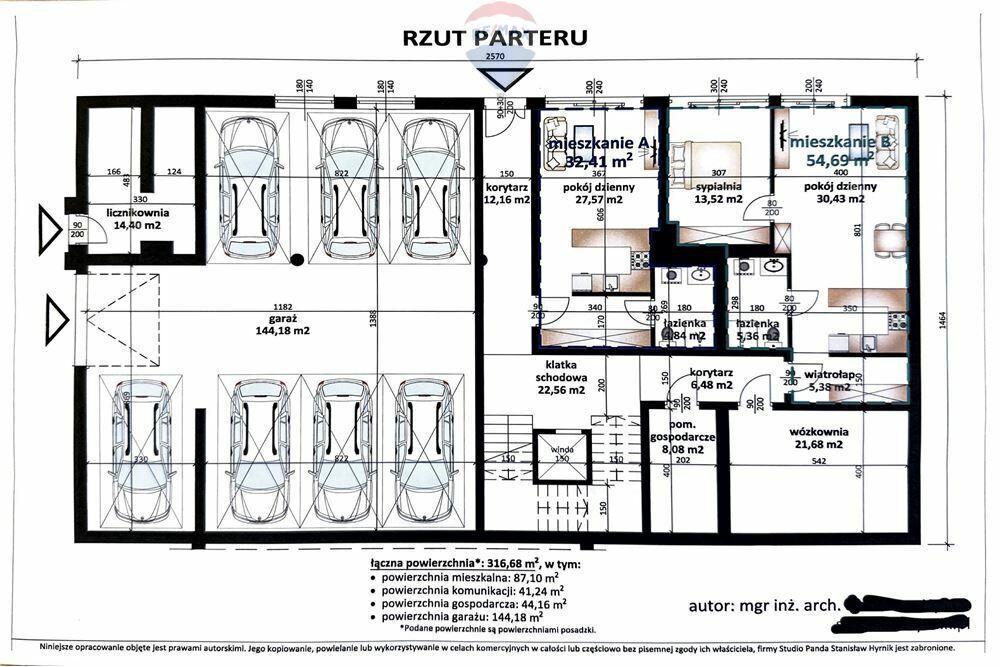 łącznej powierzchni 305,36 m2 + garaż z 7 miejscami parkingowymi.